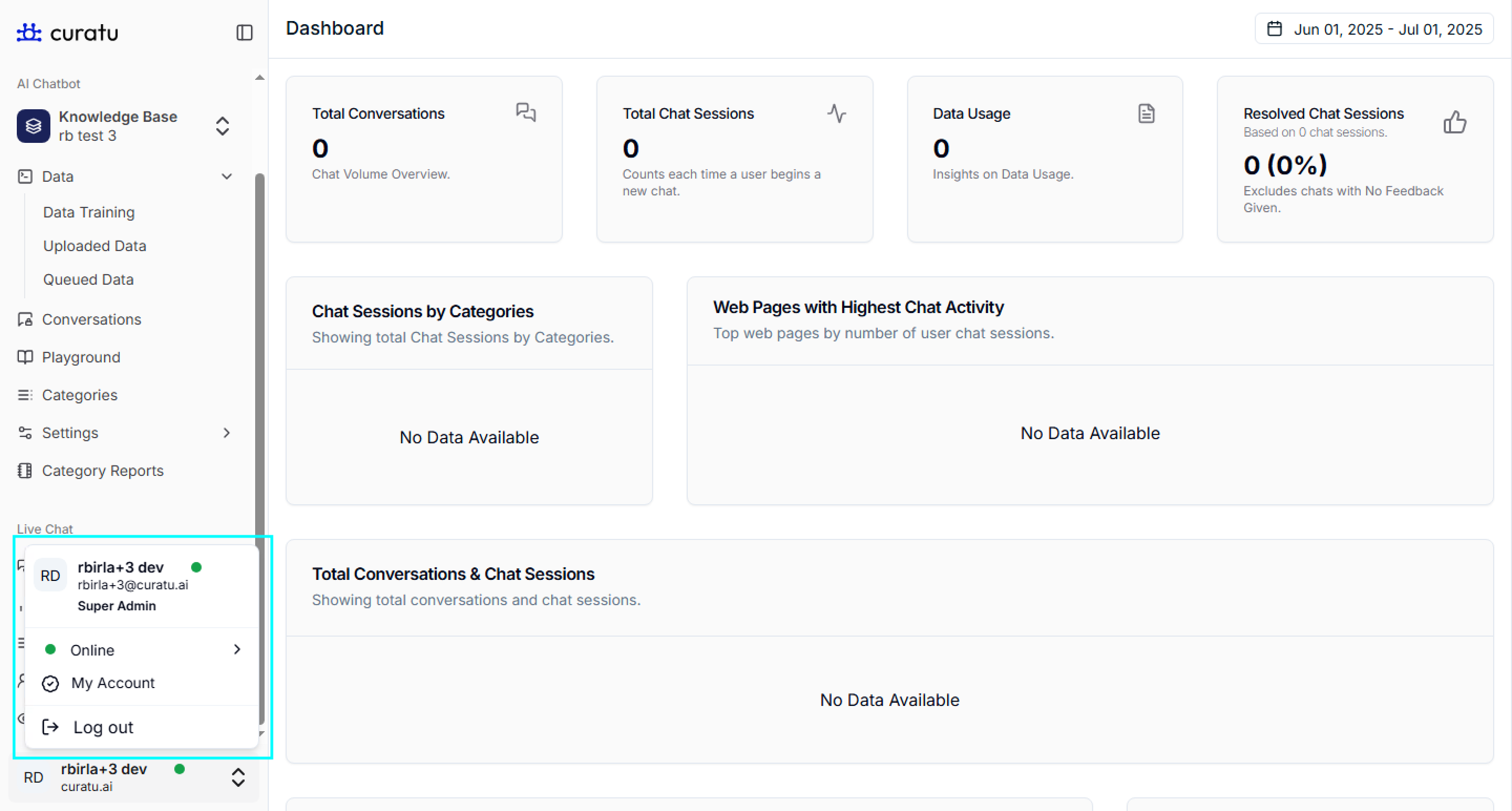 rbirla+3 dev). - Email: Shows the email address linked to the user account.