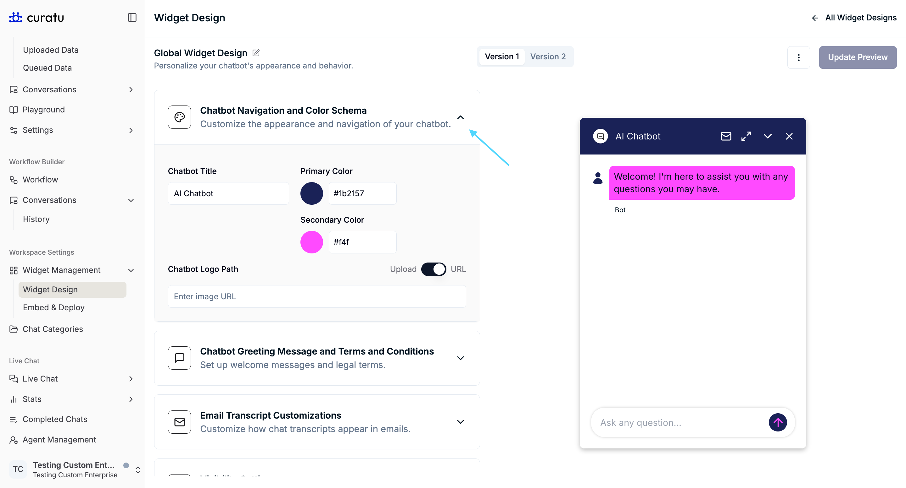 This feature is focused entirely on visual presentation and user experience, keeping design management isolated from chatbot behavior.