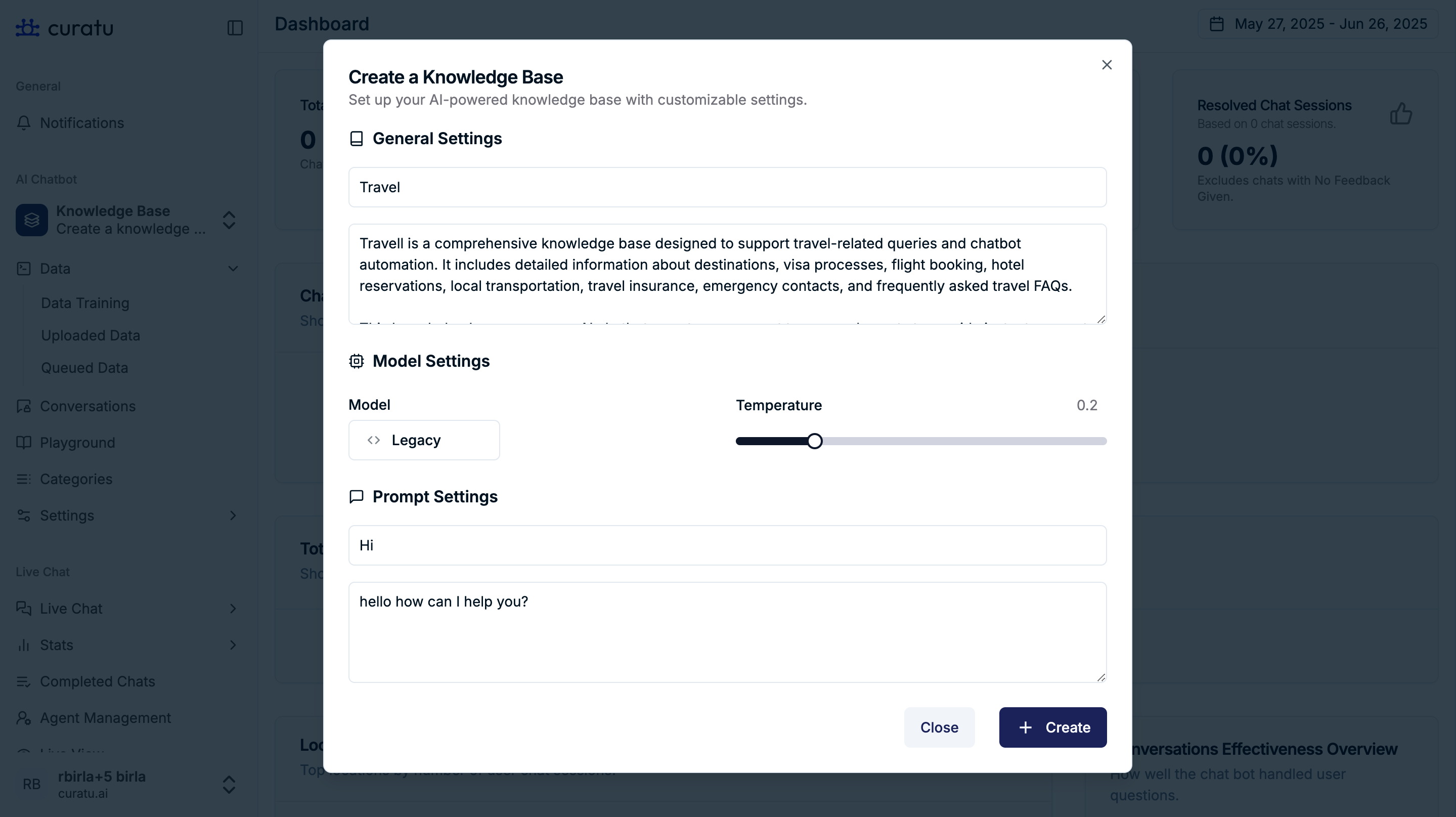This guide explains how a Super Admin can create and train a Knowledge Base on the Curatu admin panel. All screenshots are provided as visual examples to help guide your actions.