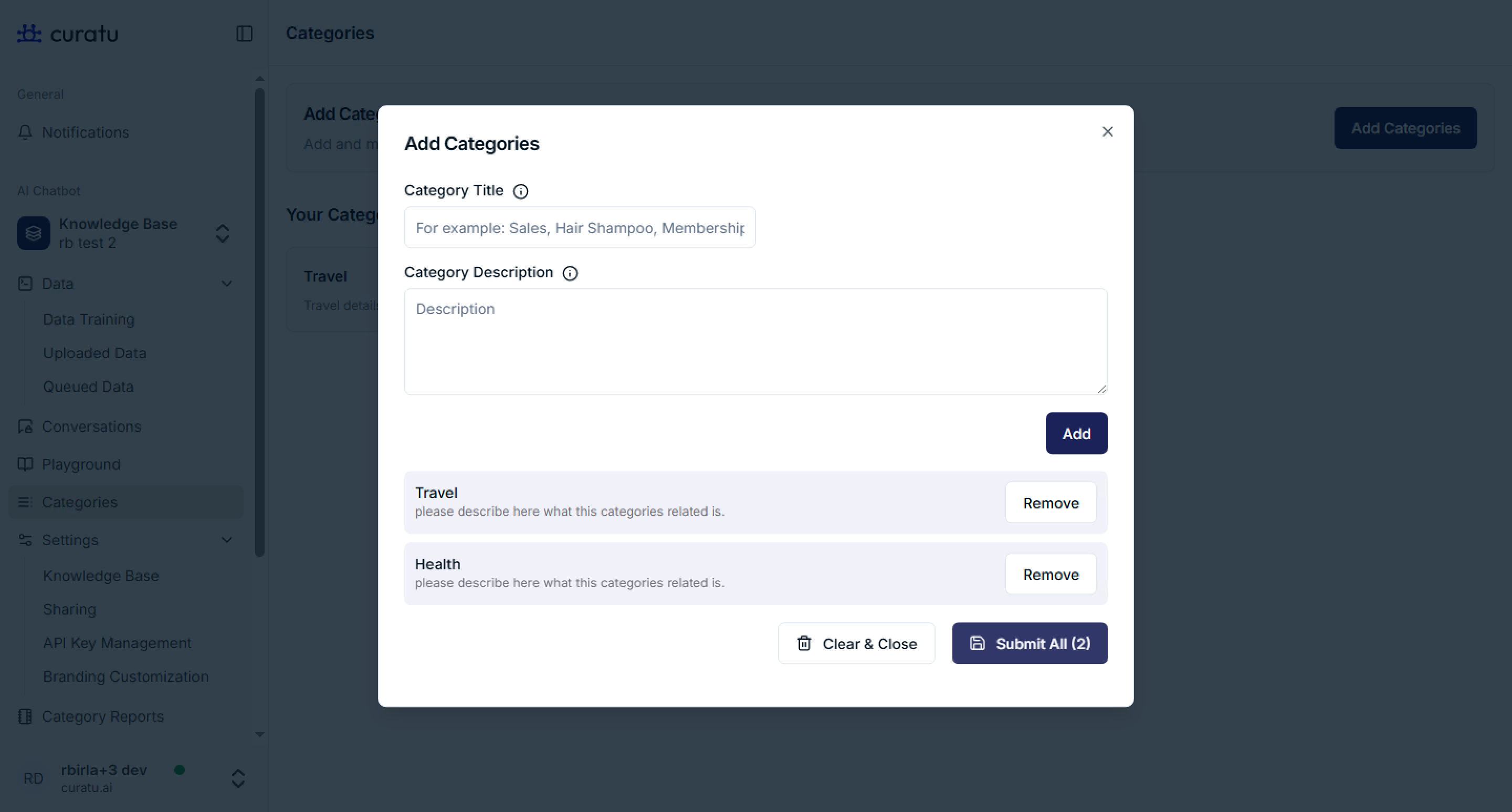 - You can add multiple categories at once before submitting.