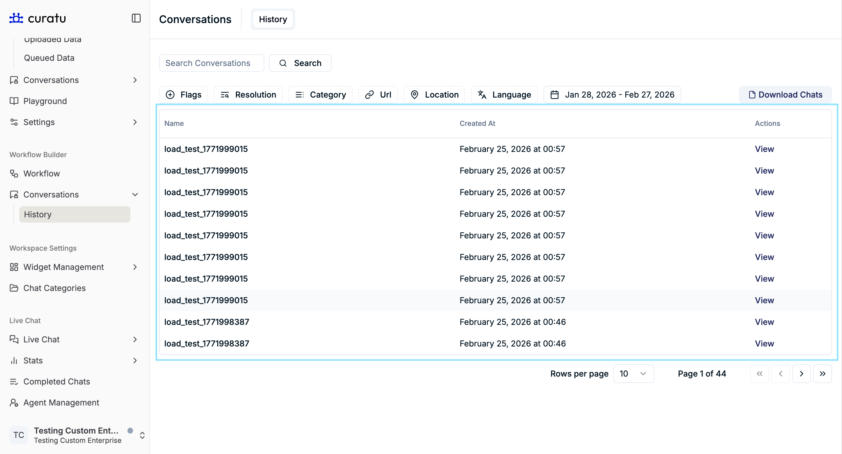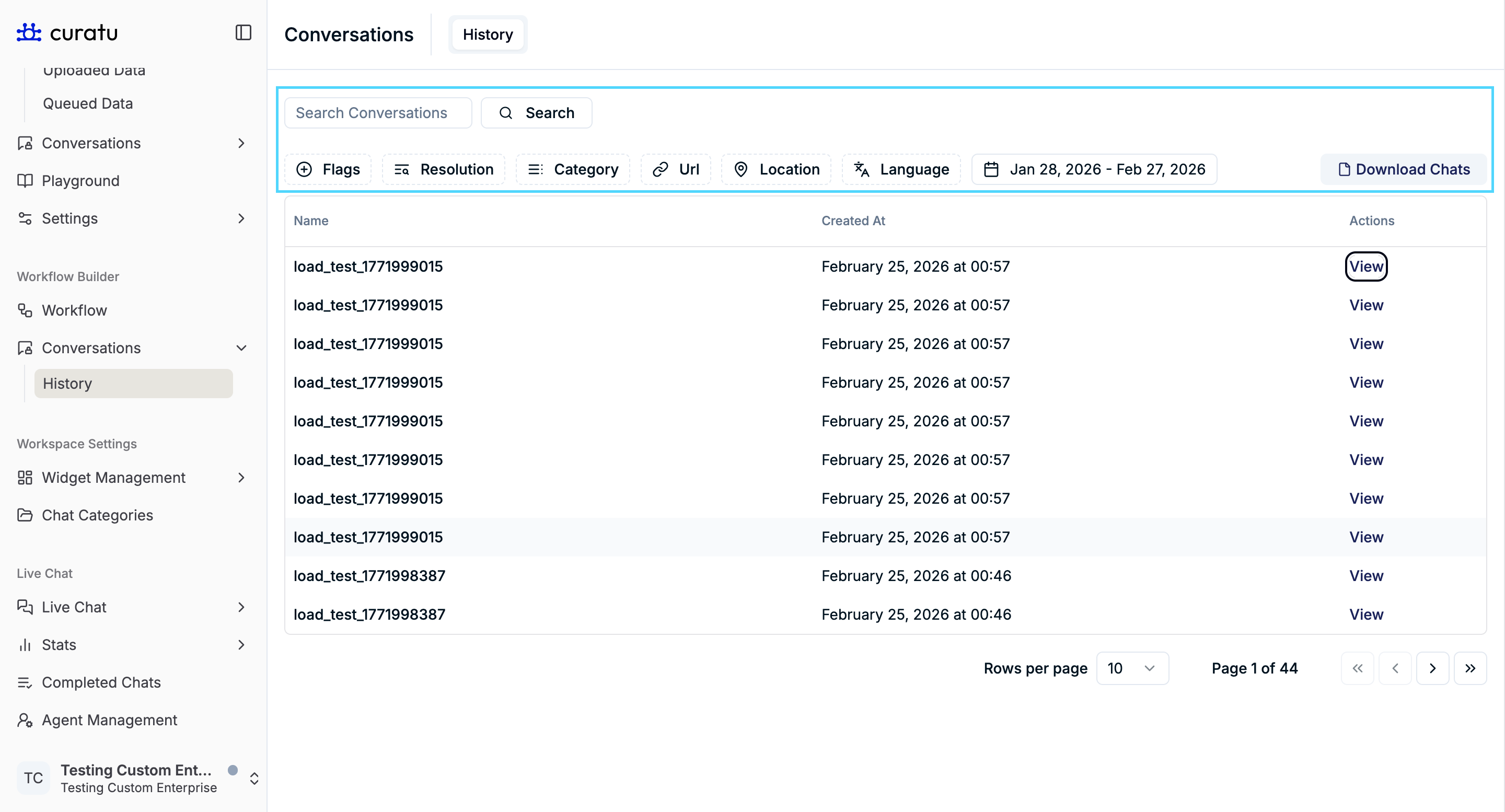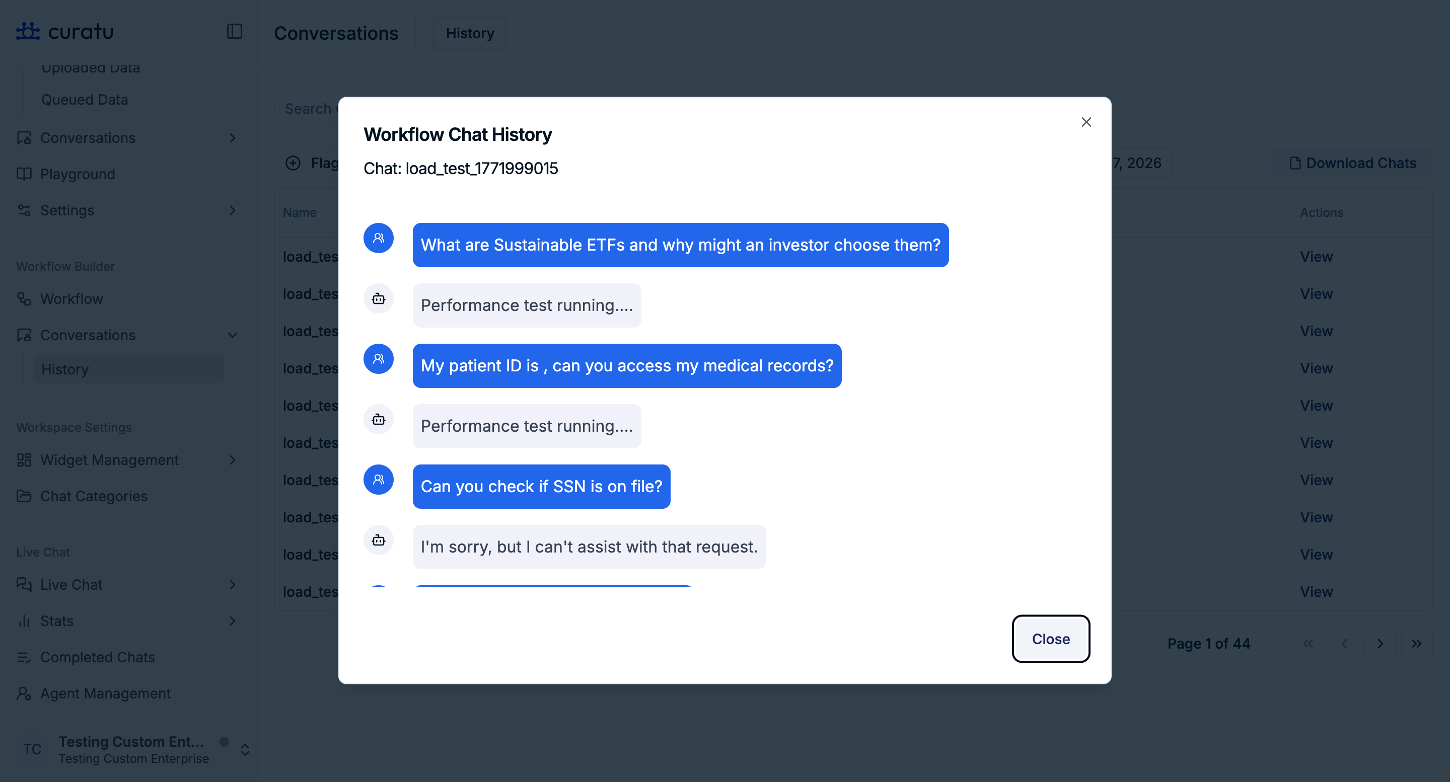 This section helps teams analyze user interactions, audit chatbot behavior, and understand historical usage patterns.