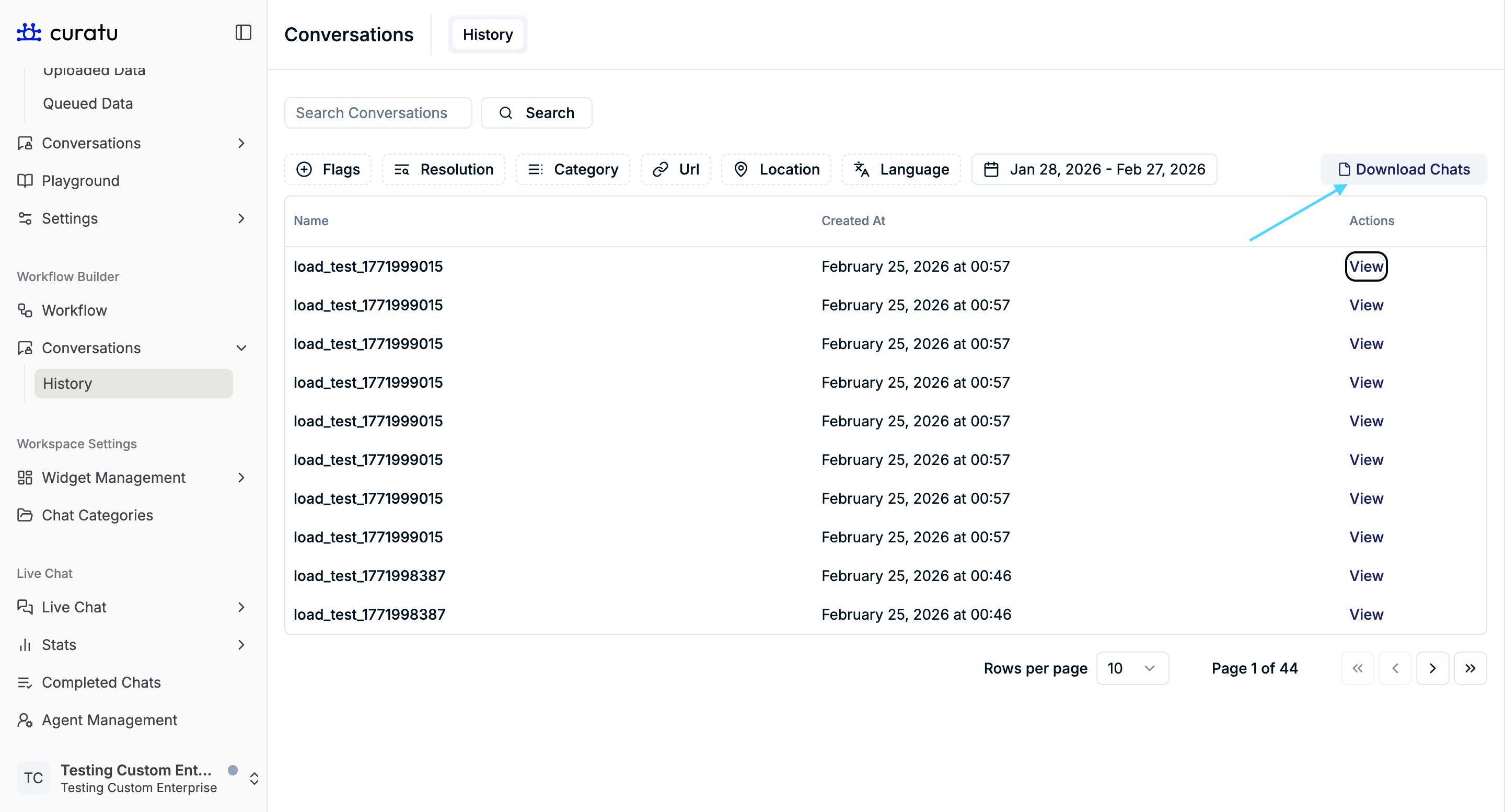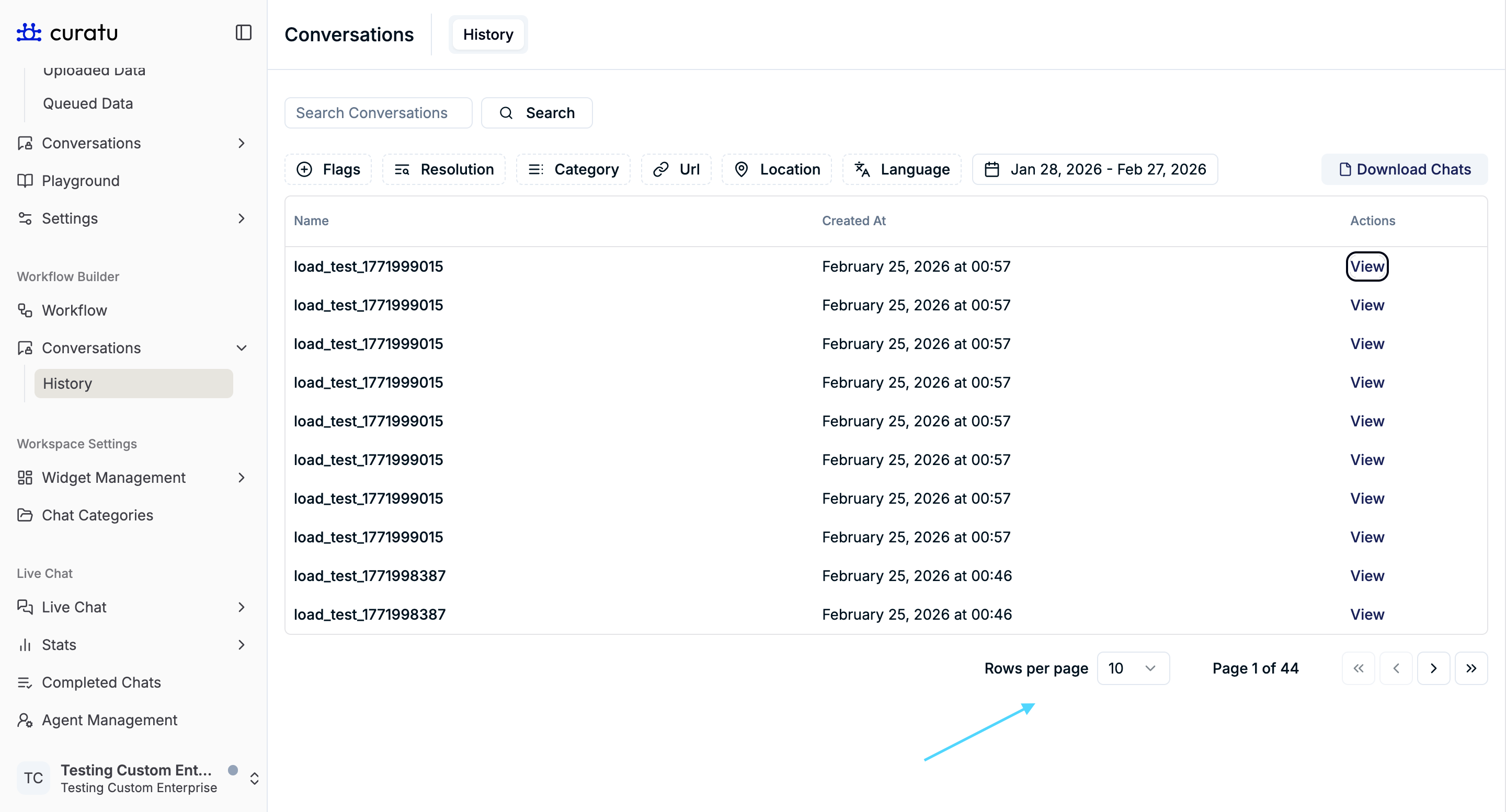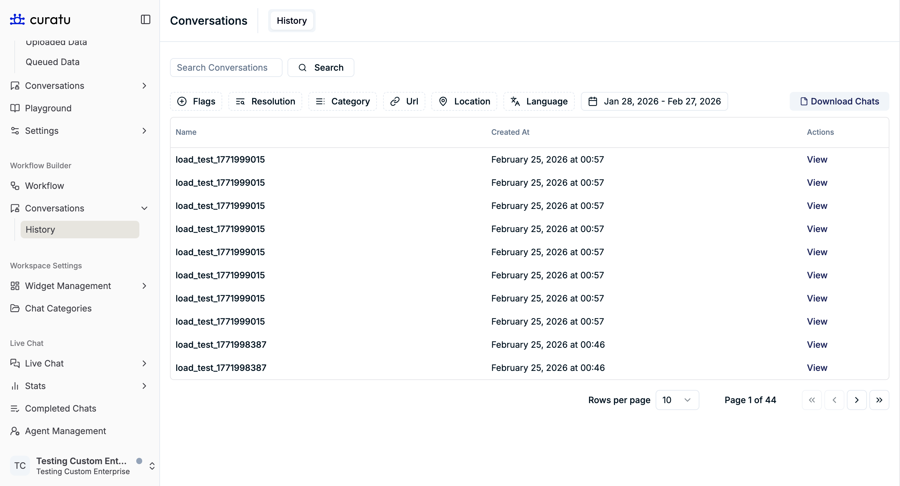 This section helps teams analyze user interactions, audit chatbot behavior, and understand historical usage patterns.