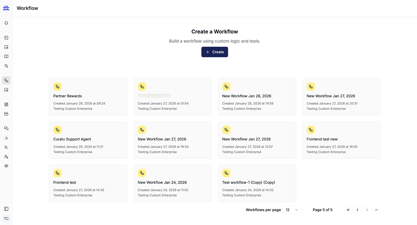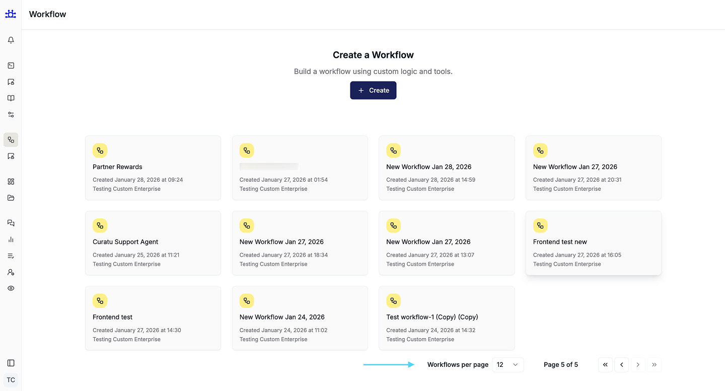 - Changing Workflows per page updates how many cards are visible and keeps pagination enabled if needed.