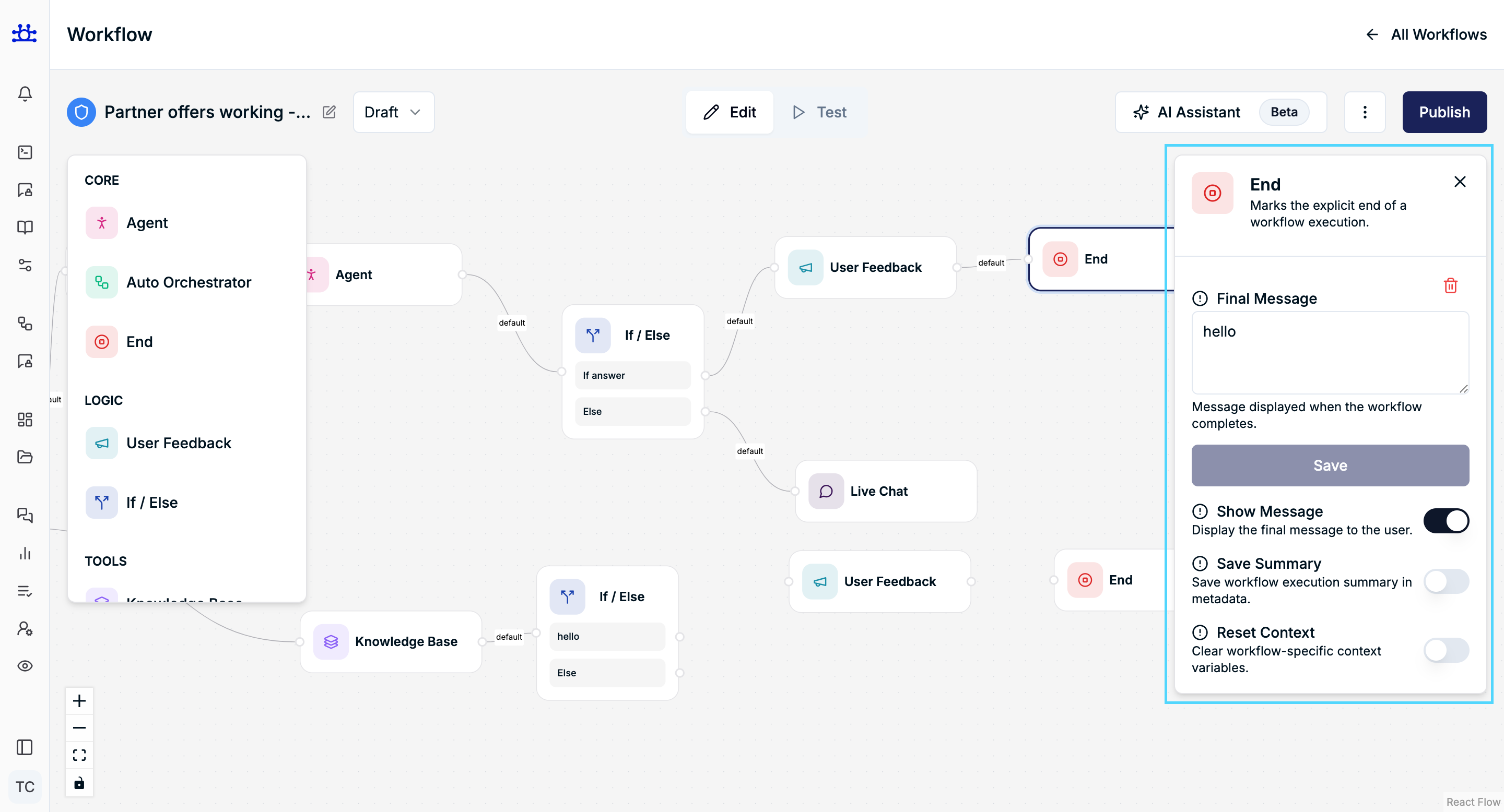 Every workflow should ideally terminate at one or more End nodes to ensure predictable behavior.