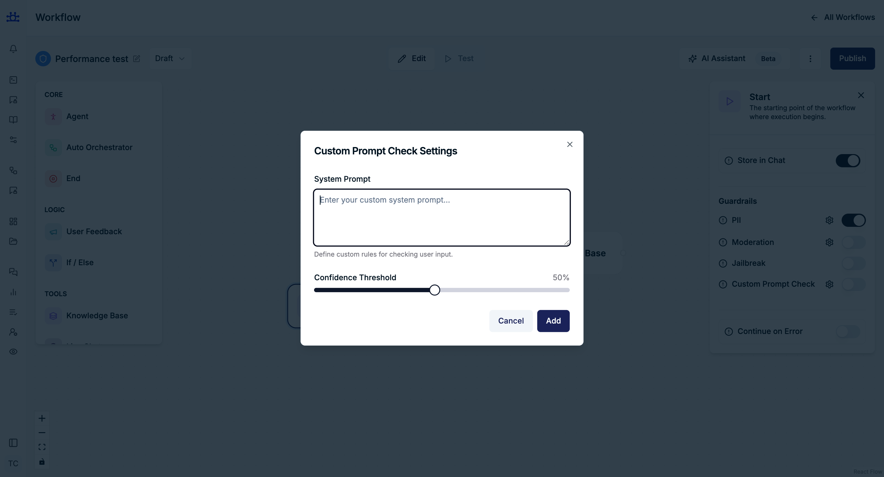 A custom instruction used to evaluate user input. - Confidence Threshold
